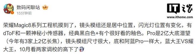 “ 开云官方IT之家 9 月 4 日消息,博主 @数码闲聊站 今日爆料称,荣耀 Magic8 系列工程机镜头模组还是居中位置,闪光灯位置有变化,有 dToF 和...